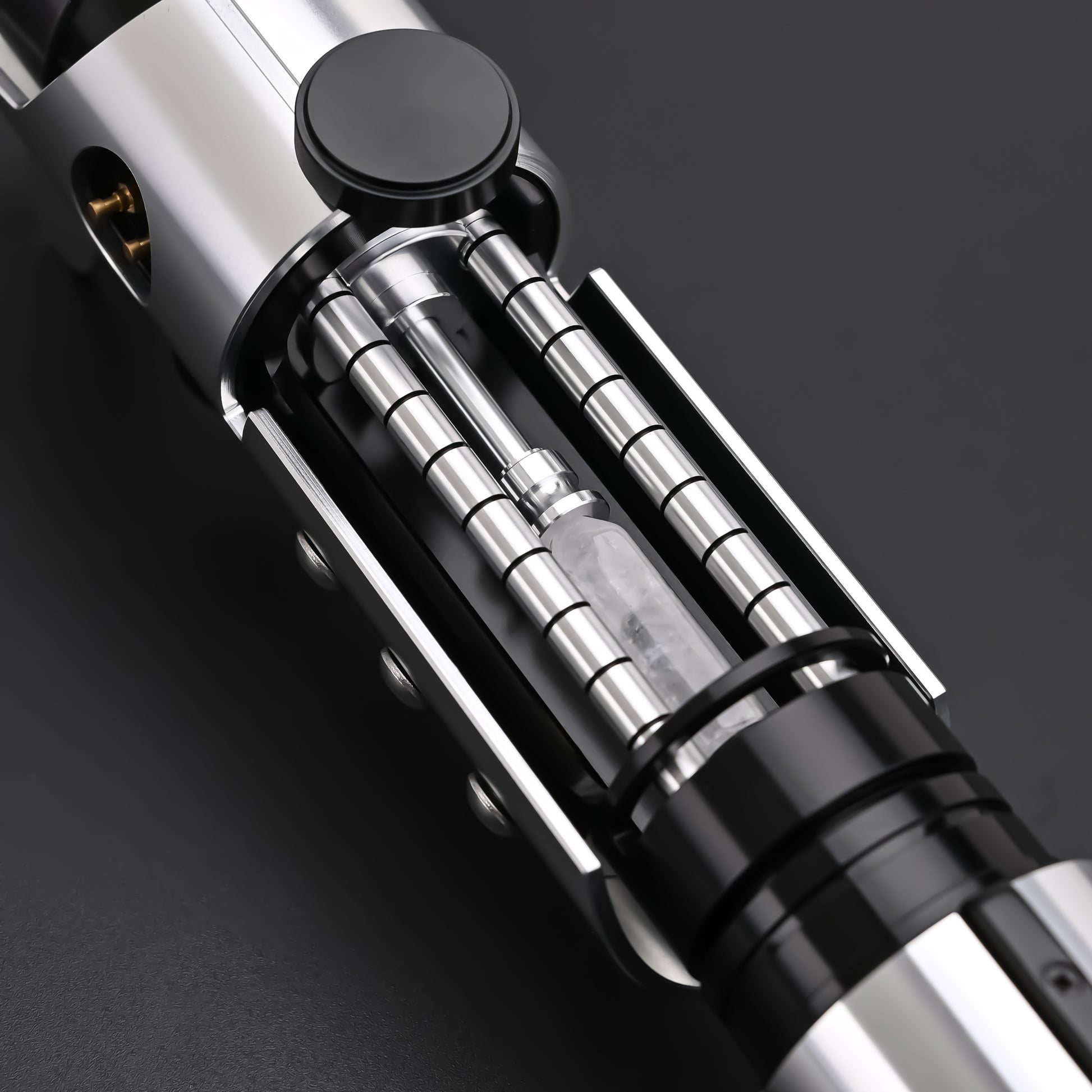 Neopixel sabers are powered by an advanced core that controls the lighting of these individual LEDs. This allows for extremely sophisticated effects not possible on RGB baselit sabers. The ignition sequence is completely animated, including gradual extension and retraction effects (creating a completely smooth ignition), as well as other specially animated effects.